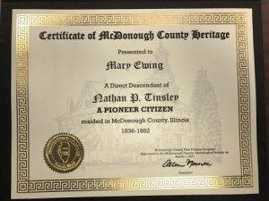 The McDonough County Genealogical Society takes pride in offering the McDonough County Lineage Certificates Program to honor early McDonough County families. Your work in proving your ancestor’s early years will be preserved for future generations by the MCGS.