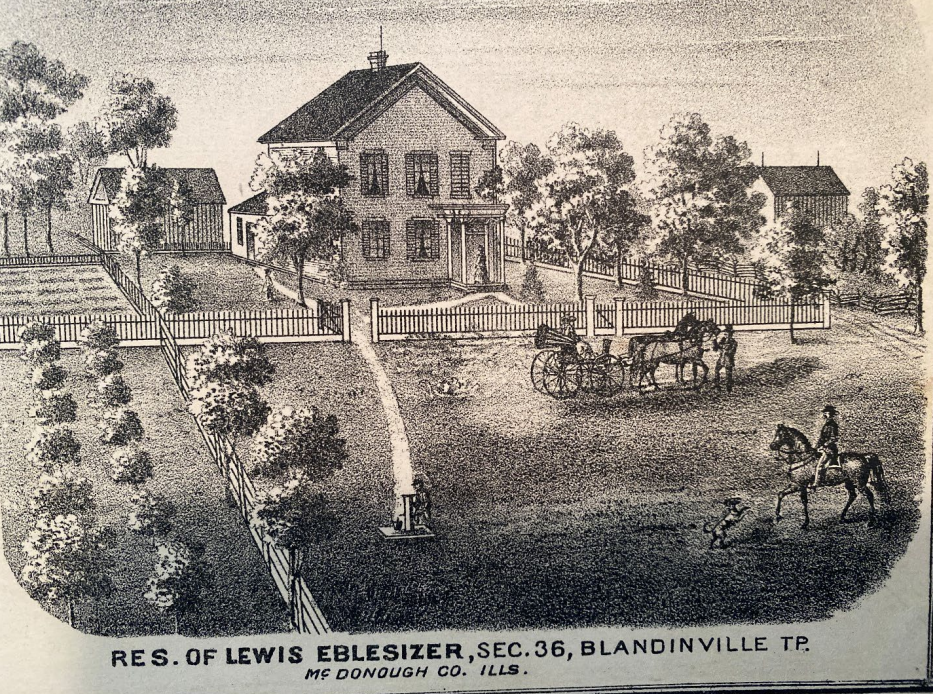 Image from the 1871 Plat of McDonough County, the home of Lewis and Elizabeth Nance